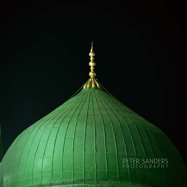 Green Dome of the Prophets Mosque at night, Madinah, Saudi Arabia