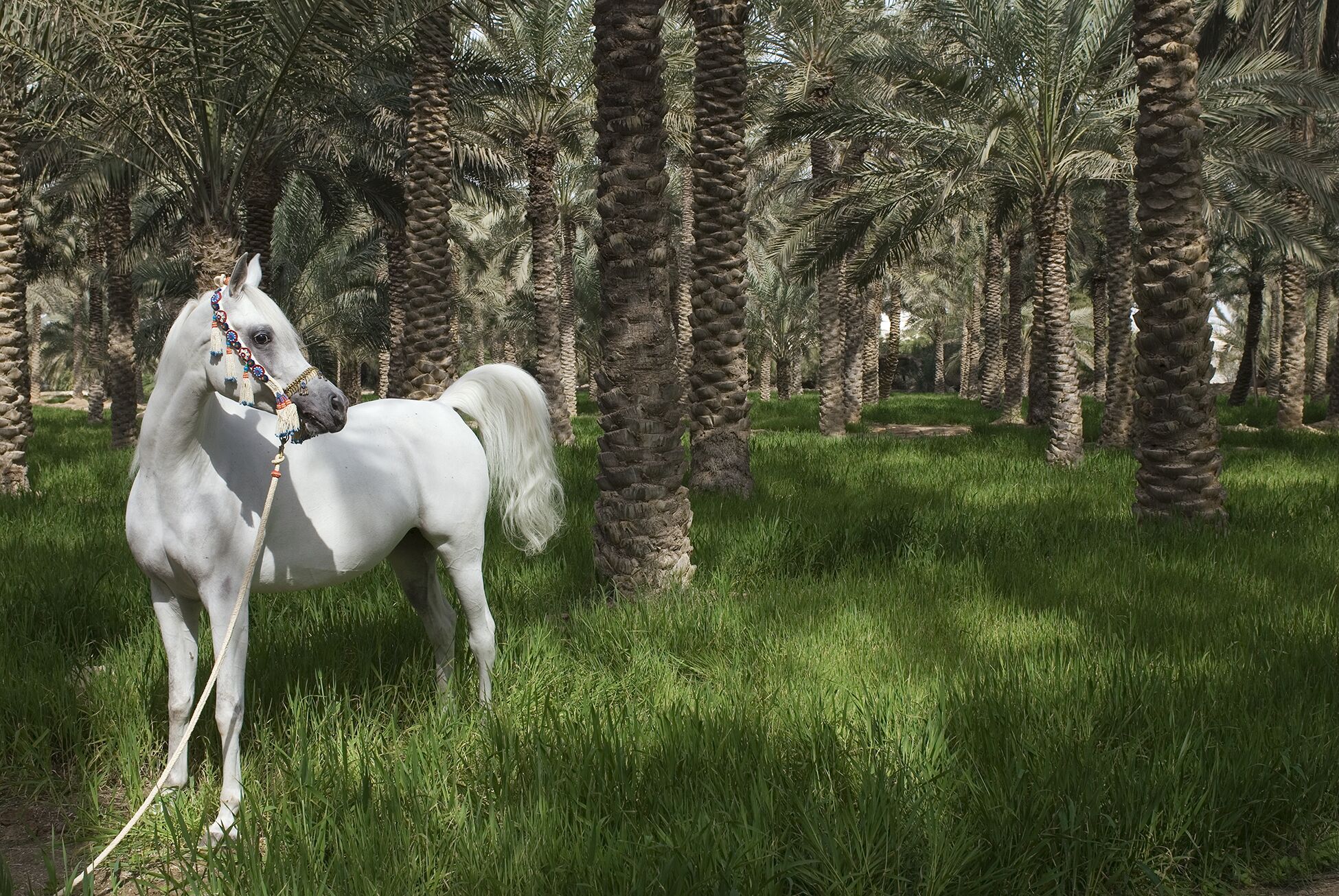 White Horse in an Oasis in Qatar